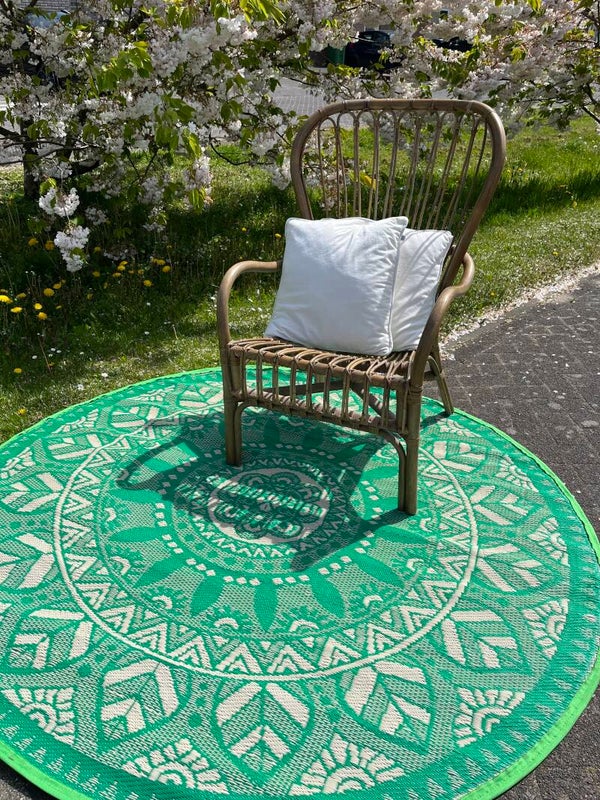 -60% korting ,Buitenkleed rond 175cm, groen/wit, mandala
