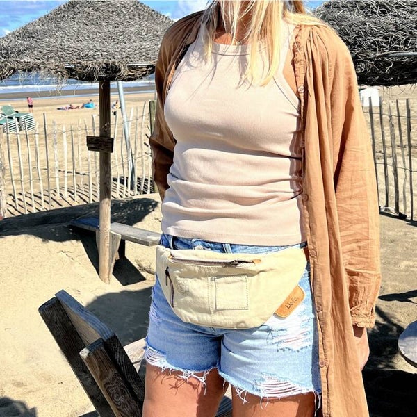 De BumBag is het ideale tasje om overal mee naartoe te nemen. Gemaakt van gerecycled canvas katoen en afgewerkt met lederen details. De heup/schouderband is eenvoudig in lengte verstelbaar. De BumBag kan op verschillende manieren gedragen worden, om de heupen, over de schouder of crossbody. Op de voorzijde komt een Liefe NL stempel.