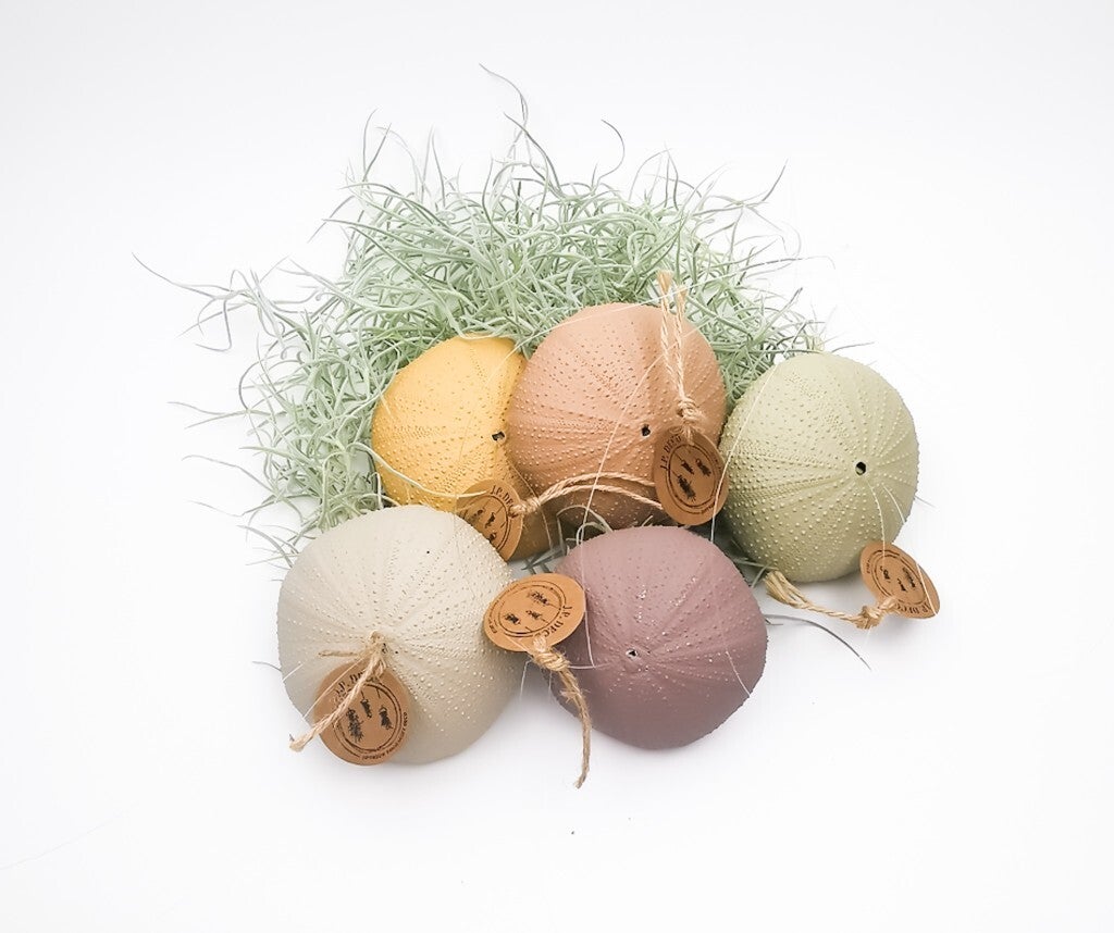 Tip: Combineer bijvoorbeeld een witte zee-egel met de natuurlijke variant. Hang er een aantal bij elkaar voor een speels effect.