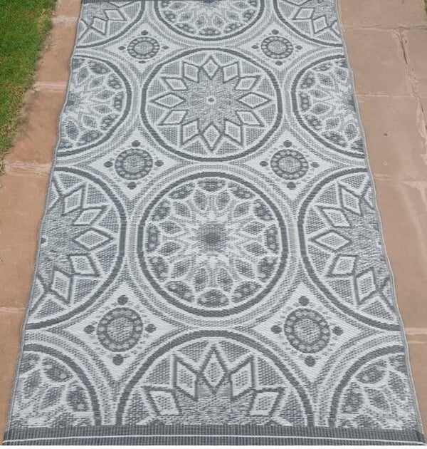 Buitenkleed 120-180cm zwart/wit/grijs, bloem
