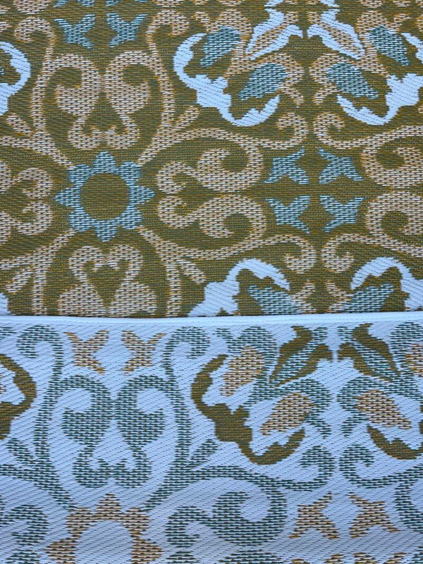 Het buitenkleed is aan de randen afgewerkt met een band en zijn aan twee kanten te gebruiken.