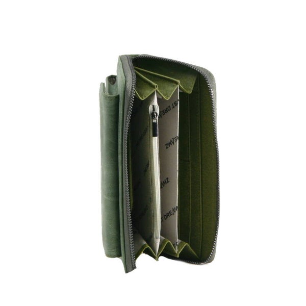 Dit is een praktische en stijlvolle portemonnee. Het heeft één hoofdvak voor je geld en pasjes, en een apart vak voor je telefoon. De portemonnee is gemaakt van duurzaam materiaal en heeft een polsbandje, wat hem handig en gemakkelijk mee te nemen maakt. De neutrale kleuren maken hem geschikt voor dagelijks gebruik en verschillende gelegenheden.