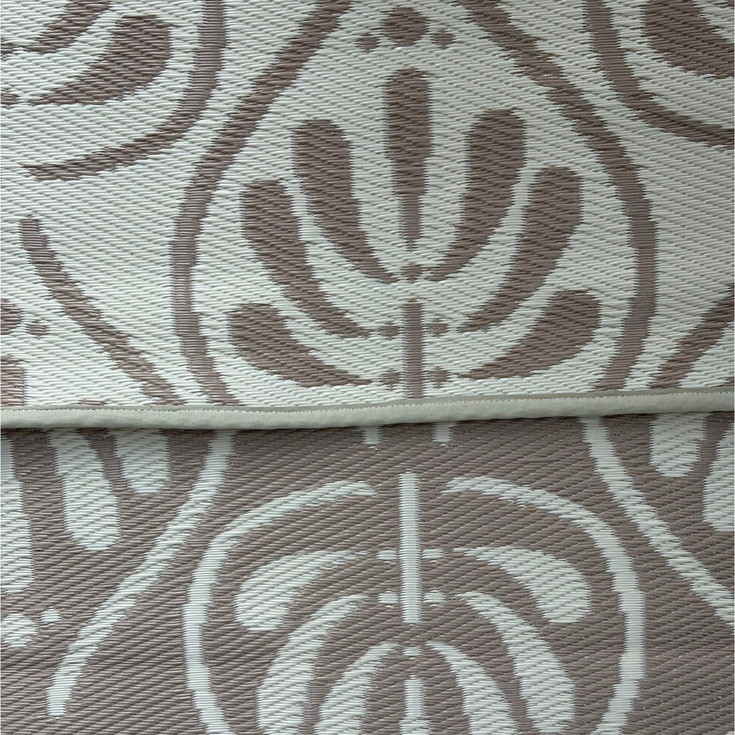 Het buitenkleed is aan de randen afgewerkt met een band en zijn aan twee kanten te gebruiken.