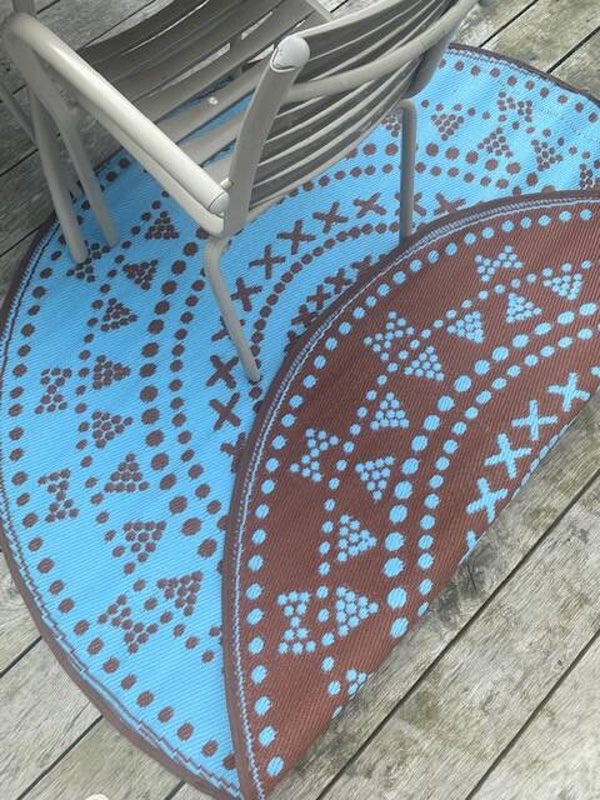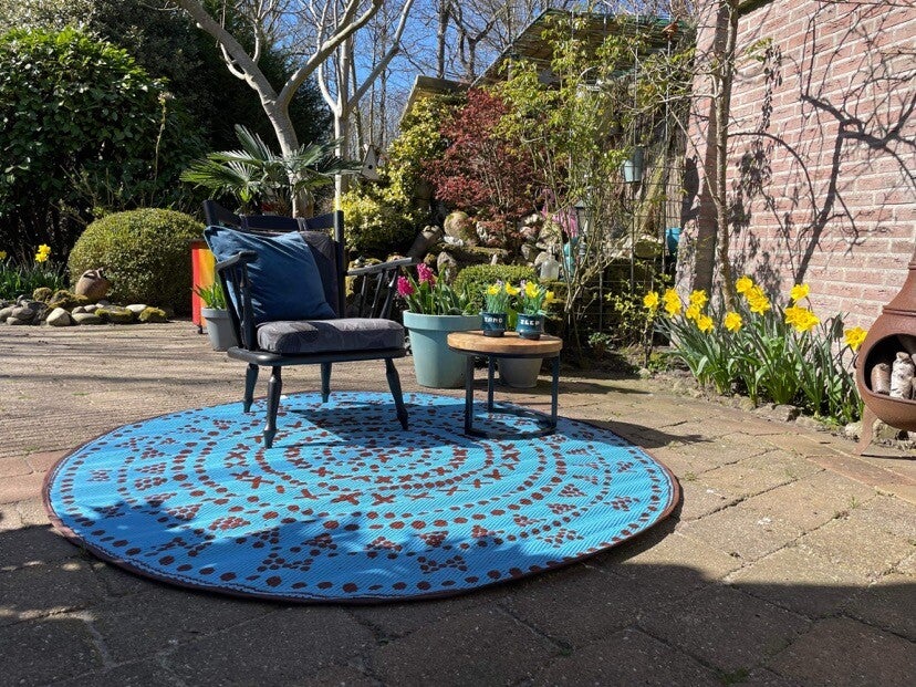 -60% korting, Buitenkleed rond, diameter 180cm, blauw/bruin