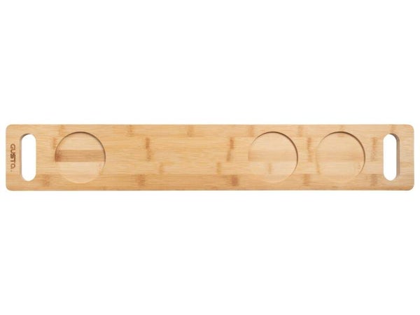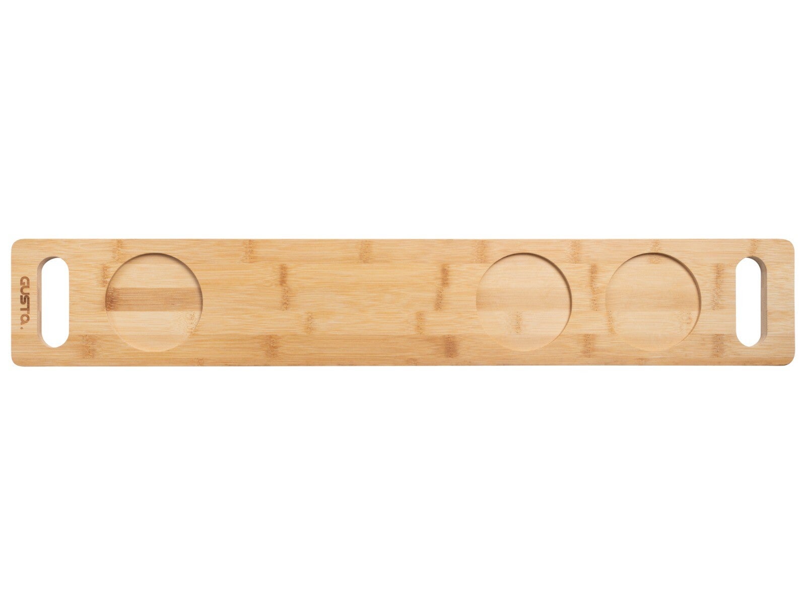 Steel de show met deze prachtige serveerplank van Gusta! De plank heeft 3 inkepingen waar je schaaltjes in kunt plaatsen. Zo blijven ze goed zitten en kun je je hapjes zonder knoeien vervoeren. Met de 2 handvatten kun je ook heel gemakkelijk rondlopen met de plank.